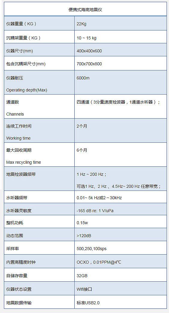 以设计轻巧,海上投放回收方便为特征。主要用于记录人工震源(如气枪、电火花)海地地震波动信号,广泛应用于上地壳结构研究。